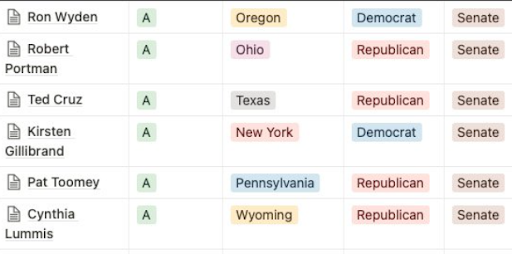 On the Senate side, six Senators earned an “A” score for crypto friendliness, including four Republicans and two Democrats. Kristen Gillibrand (D-NY) and Ron Wyden (D-Or) made the A-list. Republicans Bob Portman (R-OH), Ted Cruz (R-TX), Cynthia Lummis (R-WY) and Pat Toomey (R-PA) also earned top grades. Toomey is retiring after the midterms.