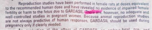 Moreover, Gardasil’s manual insert for physicians states it has not been adequately tested to determine whether it impairs a woman’s fertility or harms the fetus.